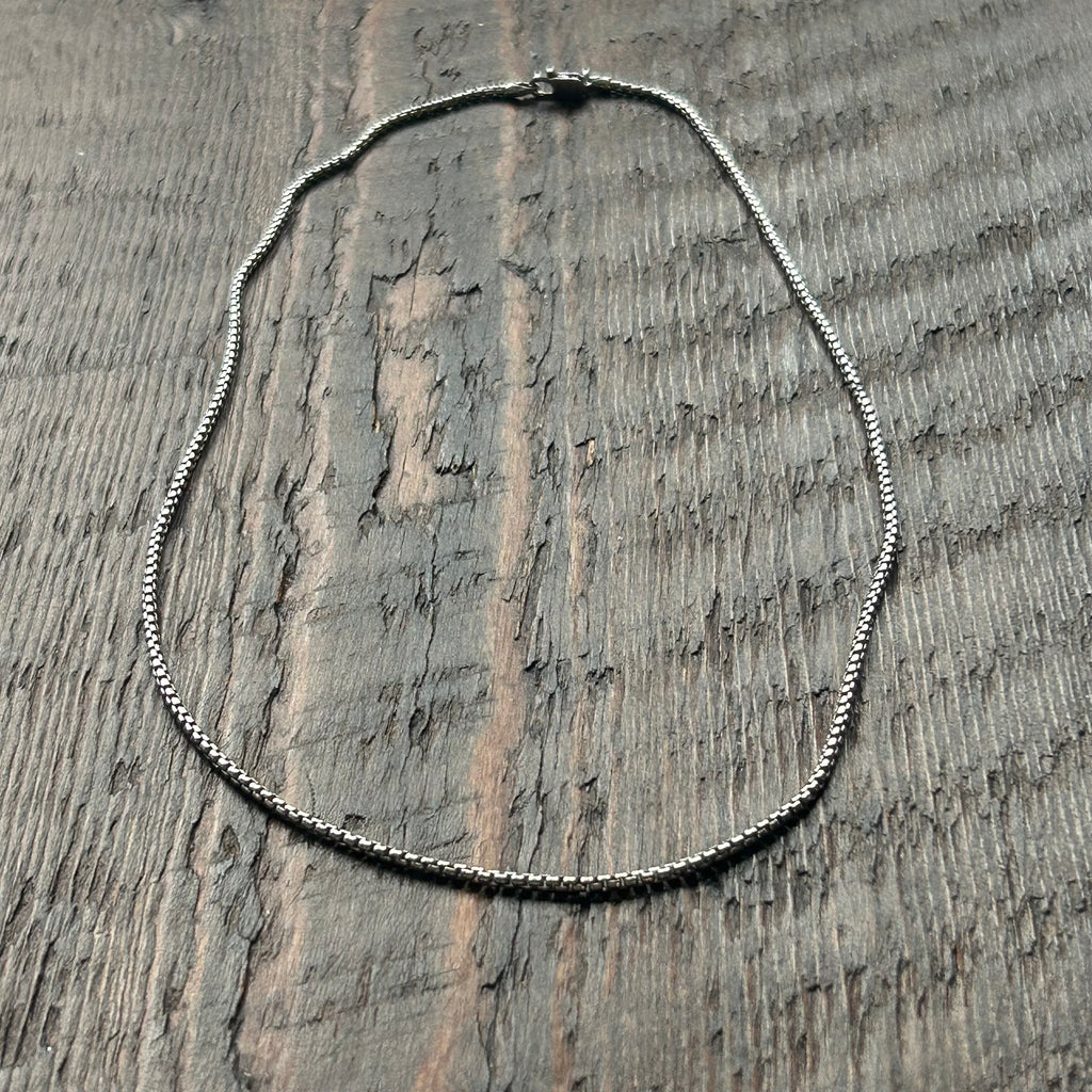 A clean, minimal 2mm Sterling Silver box chain built for everyday wear. Sharp edges, sleek shine — the perfect subtle flex.