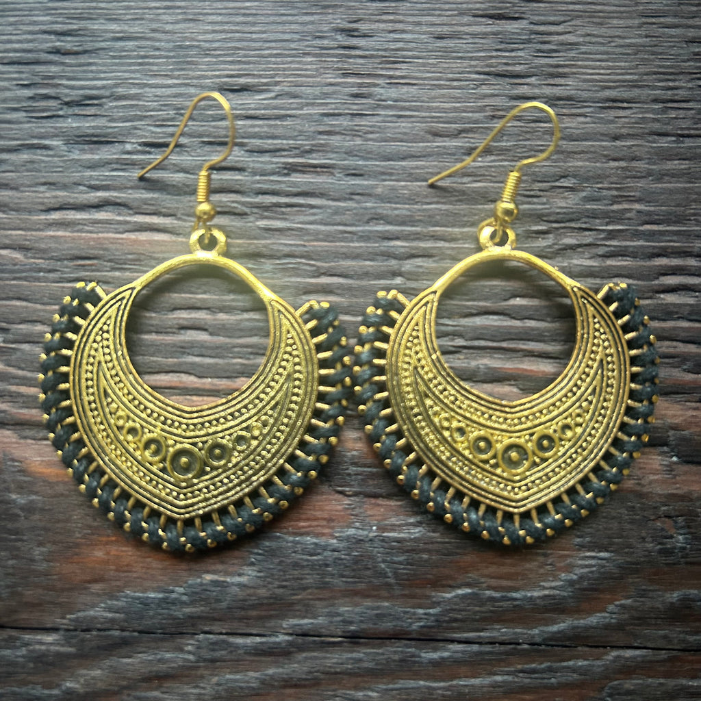 'Ethnic Vibes' Ornate Fan Earrings - Black