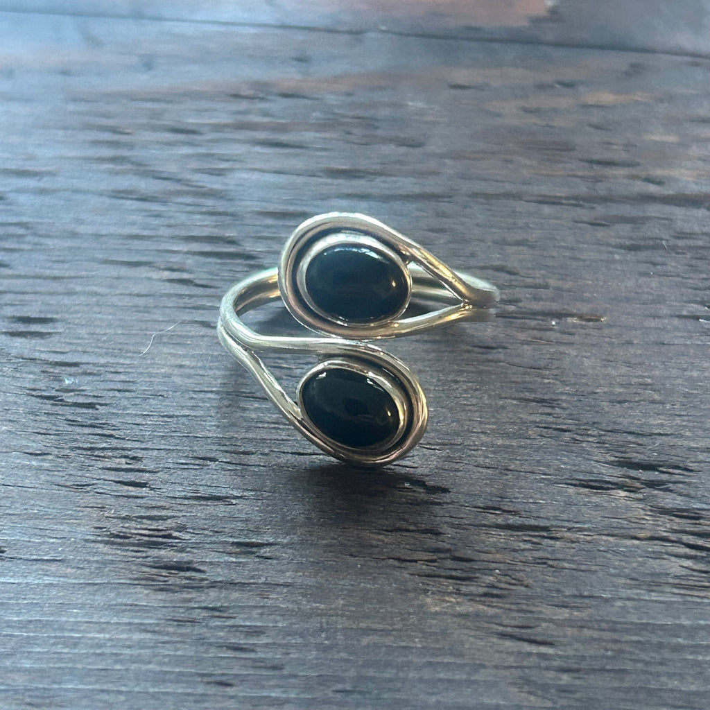 Elegant Twin Stone Adjustable Sterling Silver Ring - Black Onyx