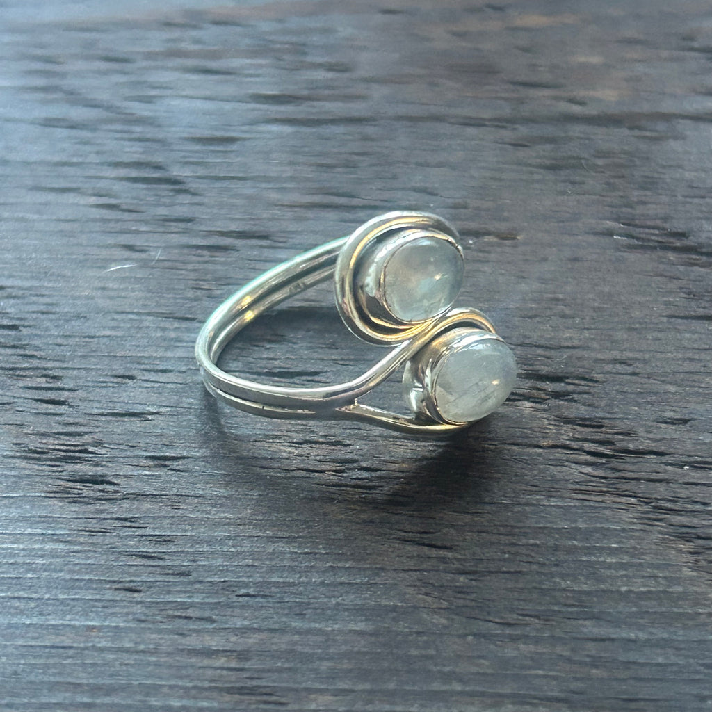 Elegant Twin Stone Adjustable Sterling Silver Ring - Moonstone