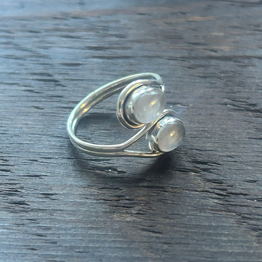 Elegant Twin Stone Adjustable Sterling Silver Ring - Rose Quartz
